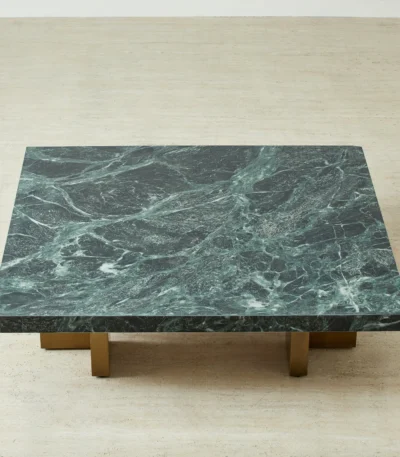 Grayson Emerald Green Sintered Stone 26cm Low Coffee Table – Brushed Bronze Legs