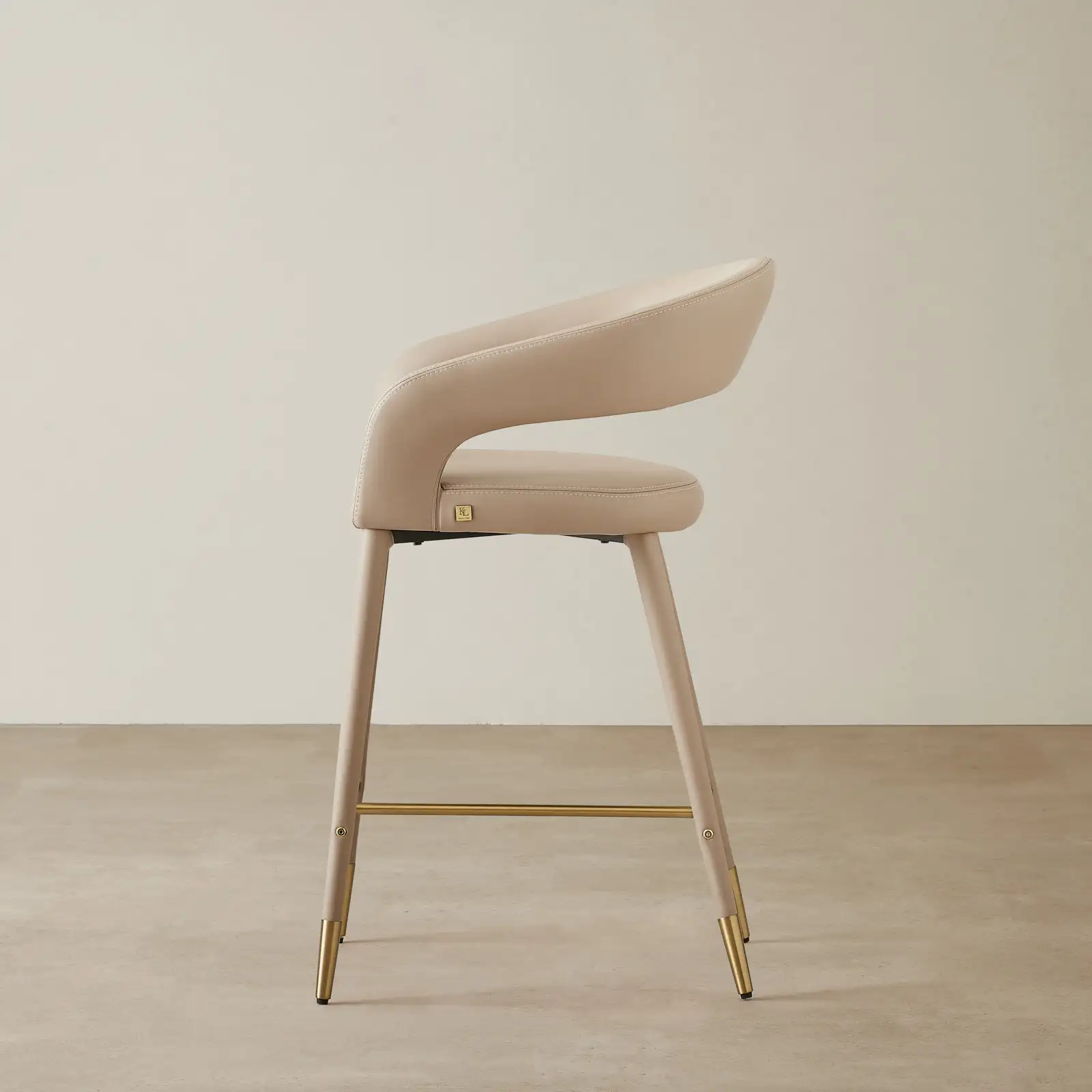 Moulin Sand Beige Vegan Leather 66cm Counter Stool – Brushed Gold Legs